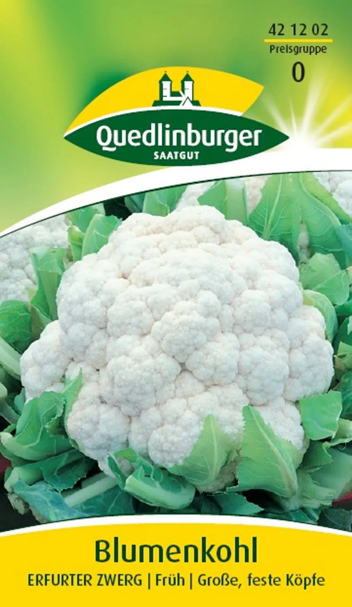 Der Blumenkohl „Erfurt“ (auch „Erfurter Zwerg“) ist eine bewährte, frühe Sorte für den Anbau unter Glas oder Folie sowie für den Freilandanbau zur Herbsternte. Er bildet große, runde, feste, schneeweiße Köpfe mit zartem, fein-aromatischem Geschmack und ist ein klassisches, vitamin- und mineralstoffreiches Kochgemüse.