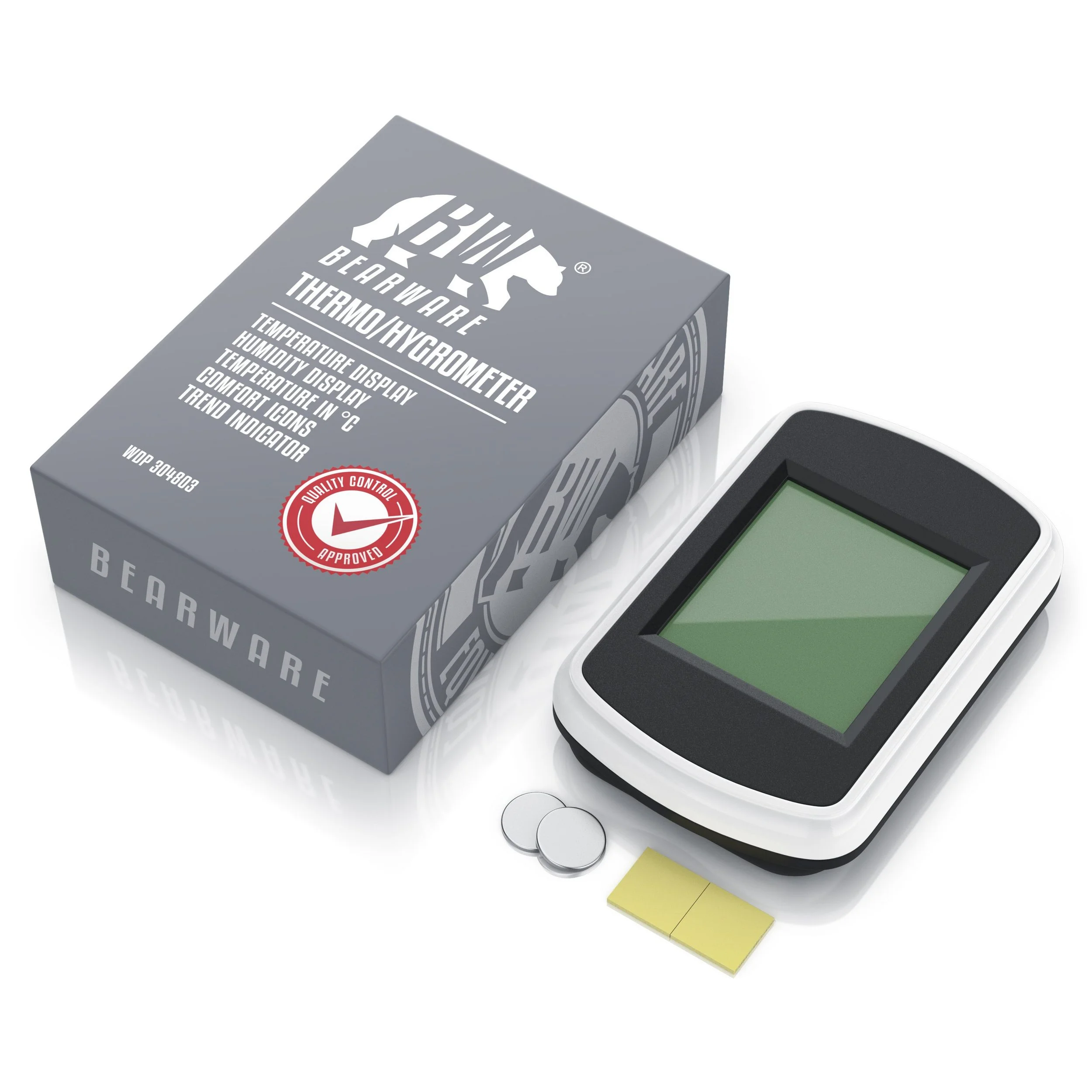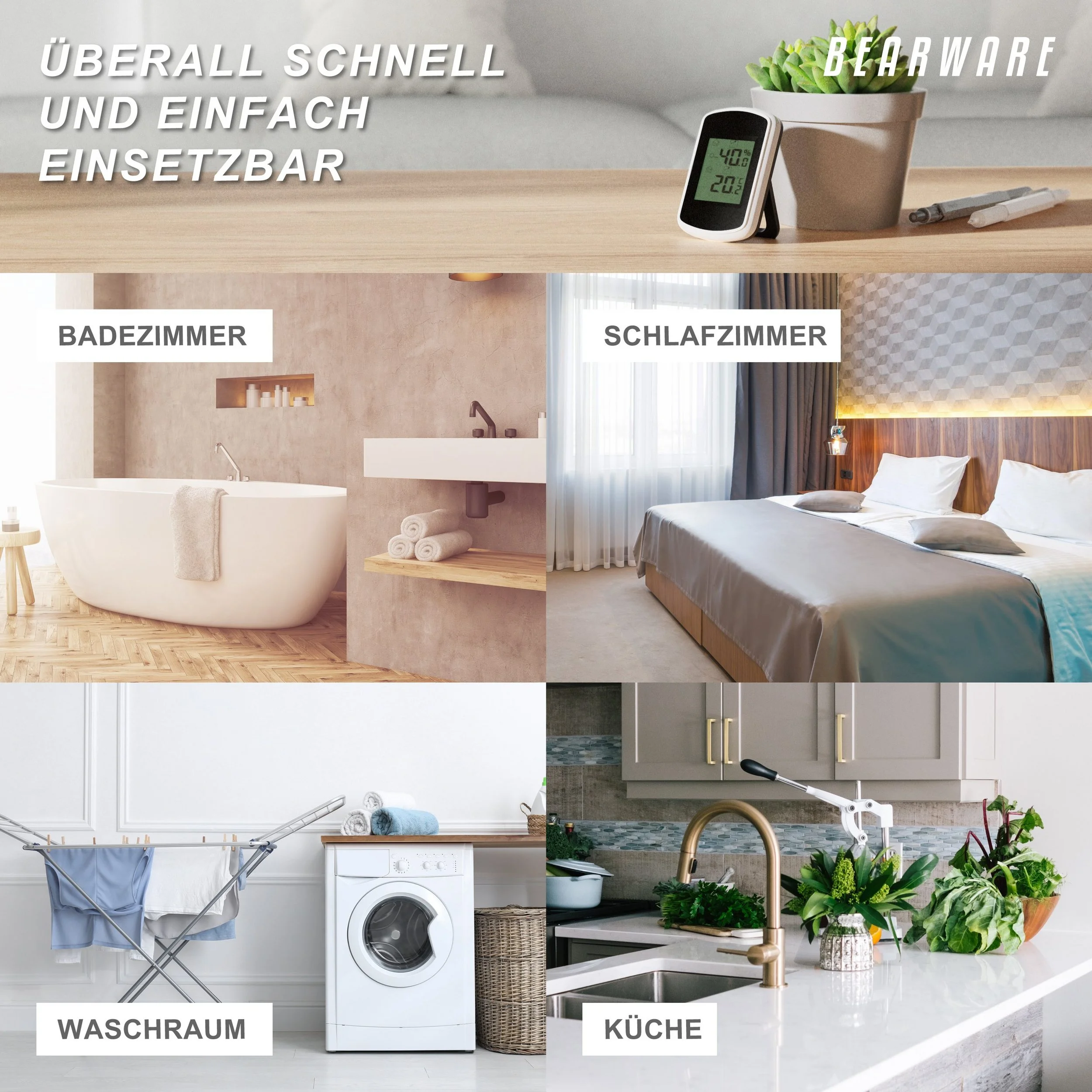 Das digitale Thermo-Hygrometer von BEARWARE bietet eine präzise Anzeige von Temperatur und Luftfeuchtigkeit – ideal für Wohnzimmer, Schlafzimmer, Büro, Gewächshaus oder andere Innenbereiche. Es kombiniert kompakte Maße mit klarer Darstellung und hilfreichen Komfortsymbolen, die sofort anzeigen, ob das Raumklima optimal ist.
