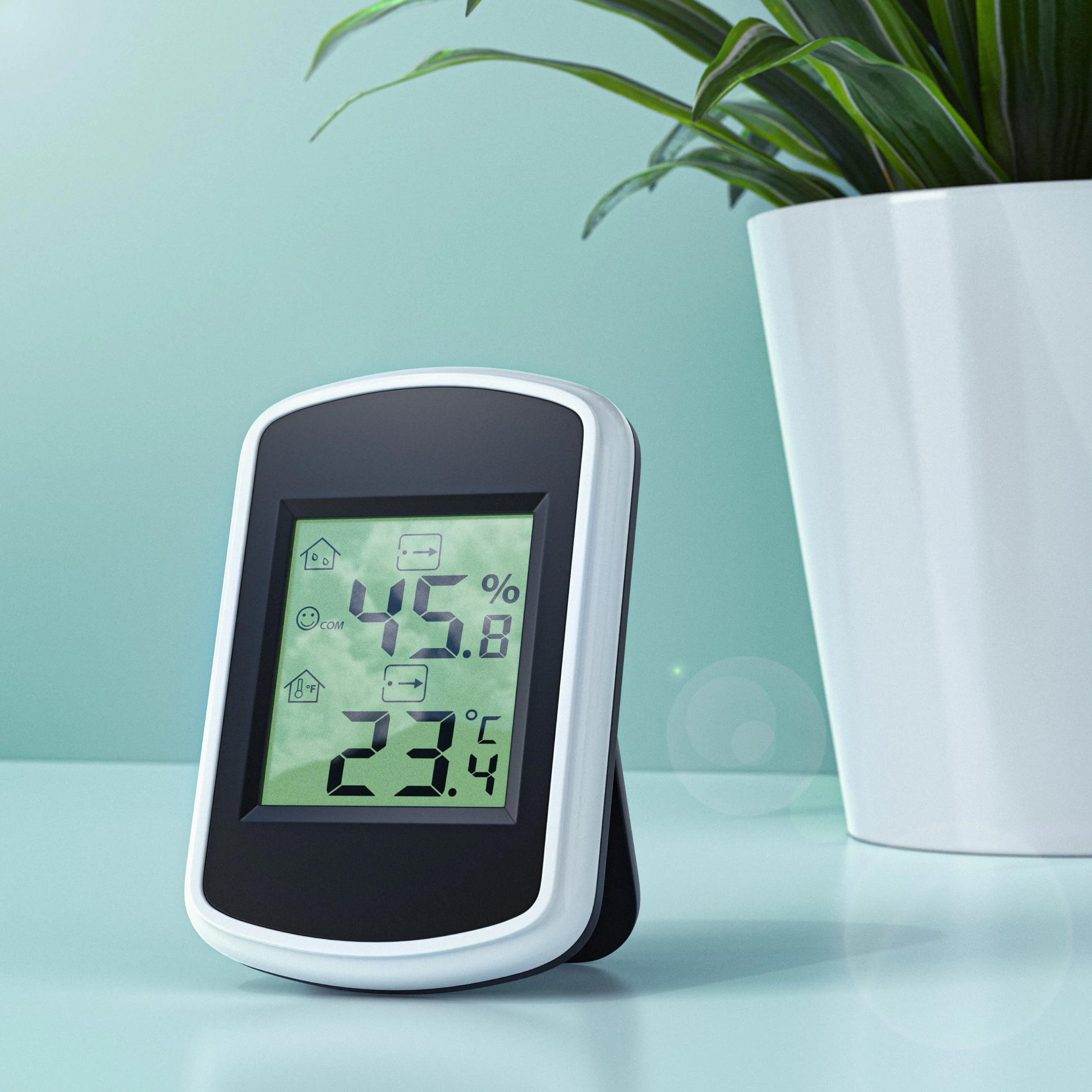 Highlights: Präzise Raumklimaüberwachung, kompakte Bauform, vielseitige Befestigungsmöglichkeiten, klare Anzeige, ideal für Wohn- und Arbeitsräume.