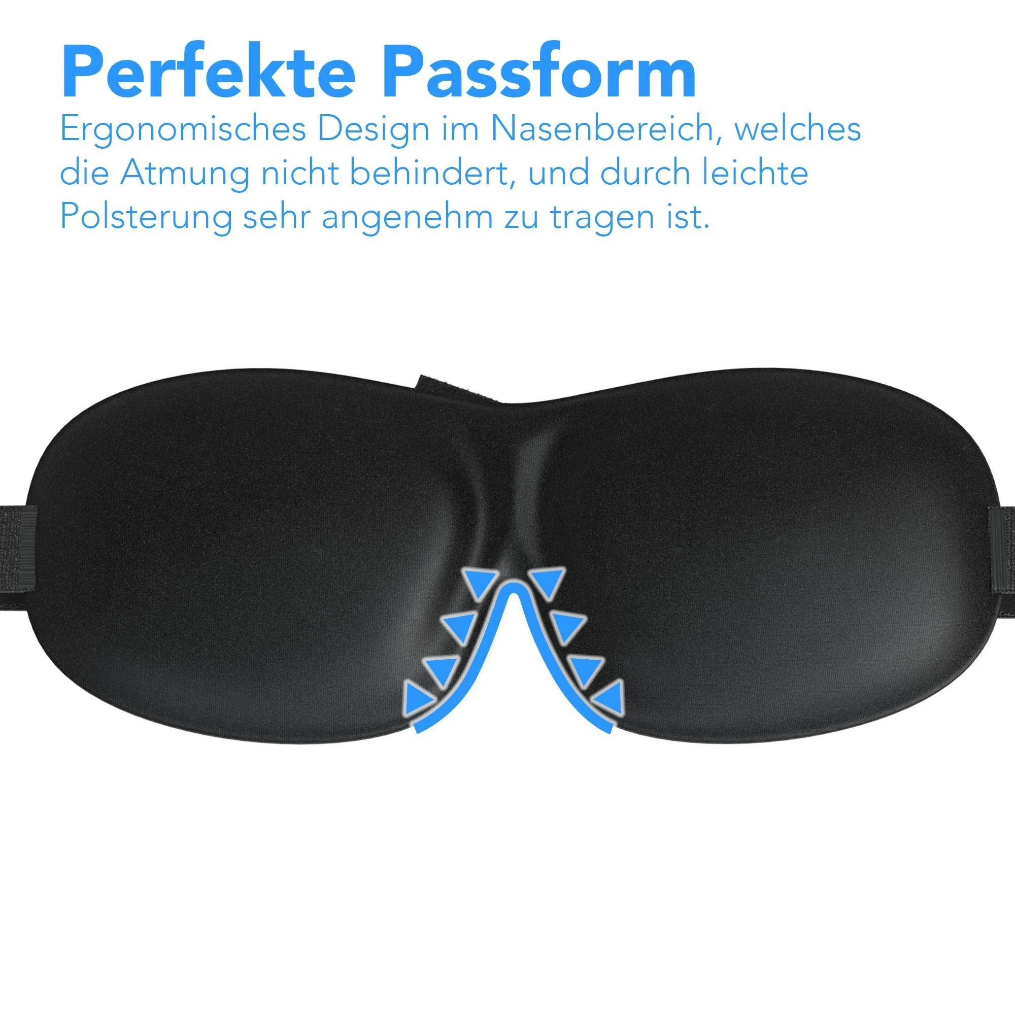 | Besonderheiten | 100 % Blickdicht, ergonomischer Nasenbereich, 3D-Wölbung ohne Druck auf die Augen, inklusive Ohrstöpsel & Beutel |