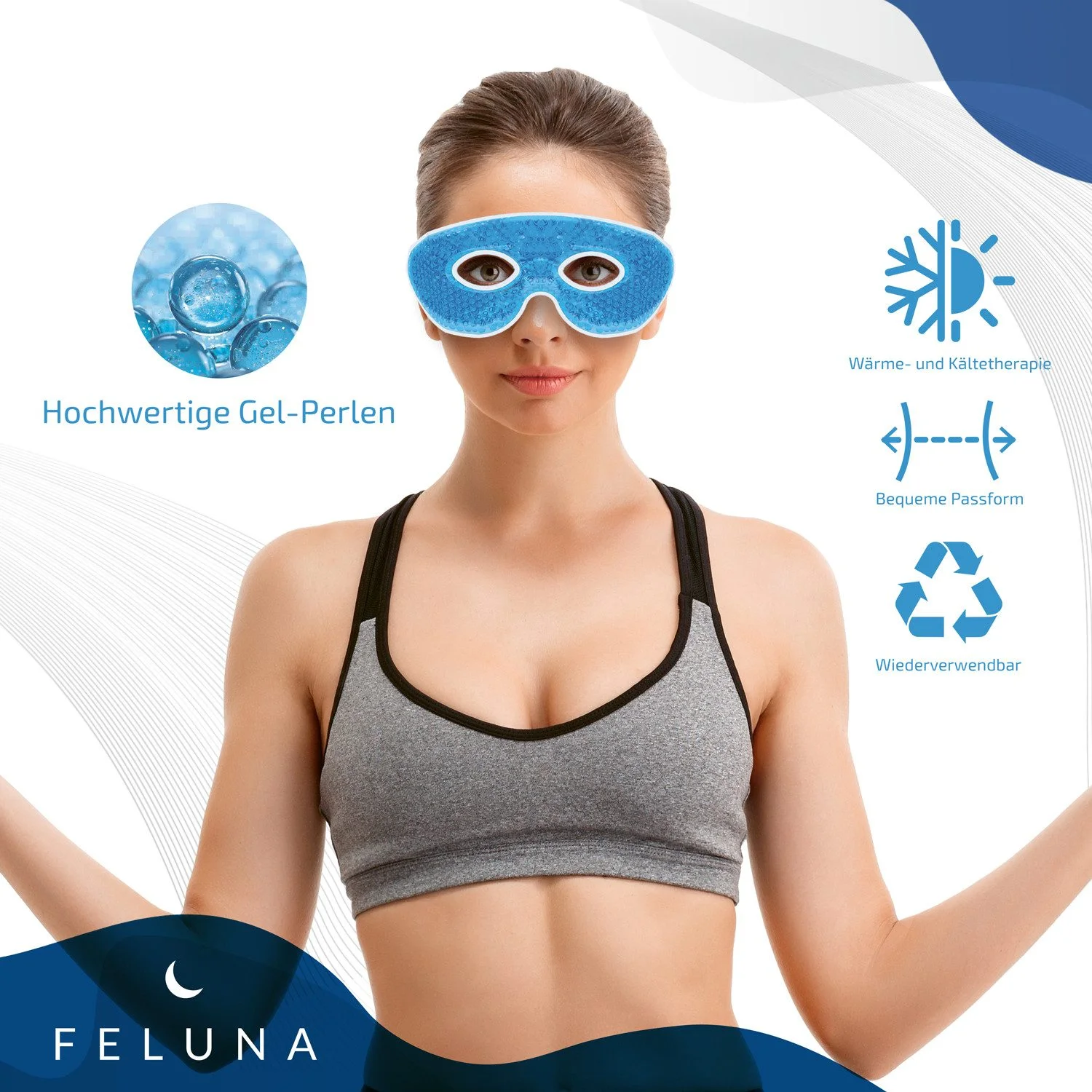 Highlights: Kühlt oder wärmt je nach Bedarf, reduziert Schwellungen & Augenringe, beruhigt gereizte Haut, kann Migräne- und Kopfschmerzbeschwerden mildern, angenehm flexibler Sitz.
