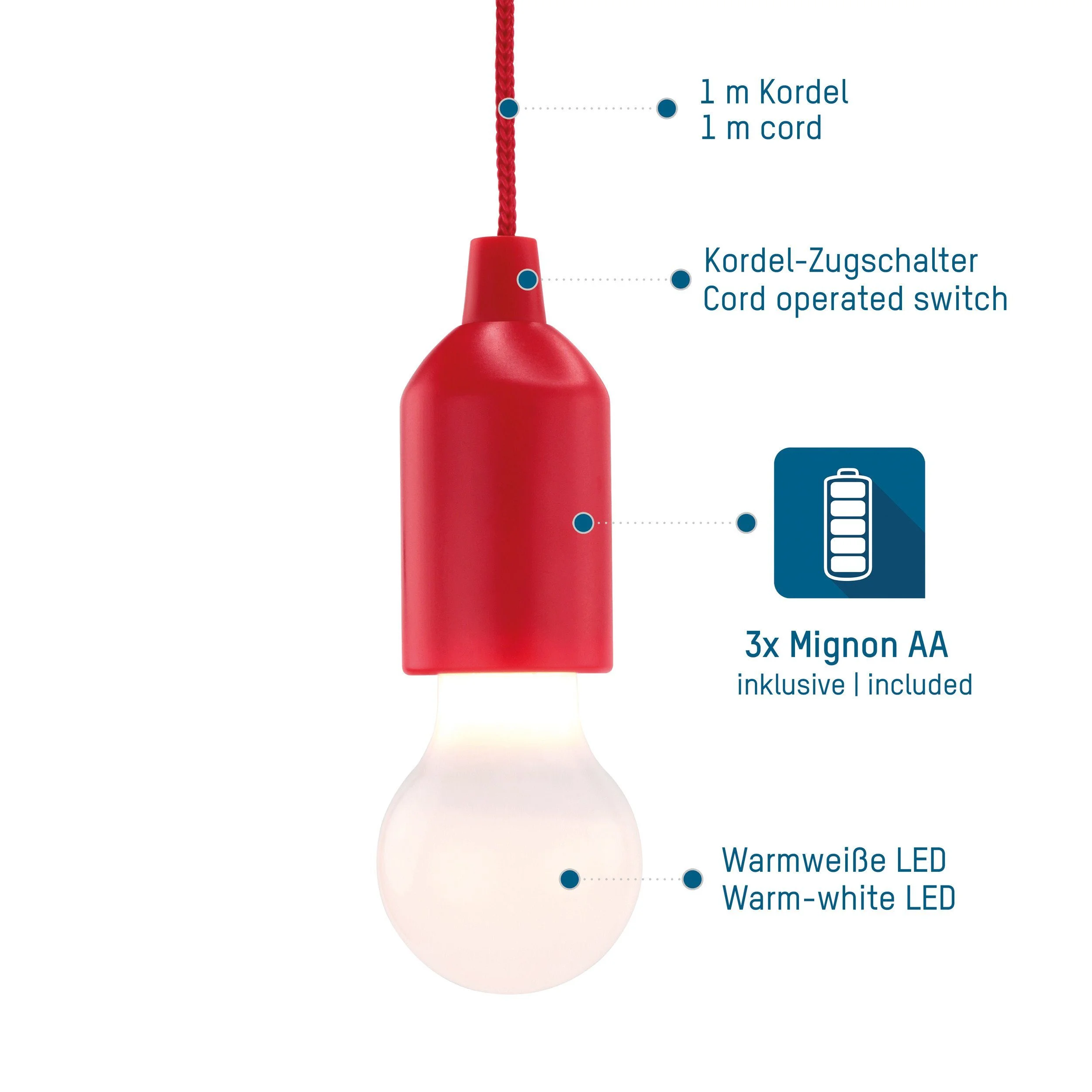 Mobile LED-Dekolampe mit Zugschalter · Warmweißes Licht · 22h Leuchtdauer · inkl. Batterien