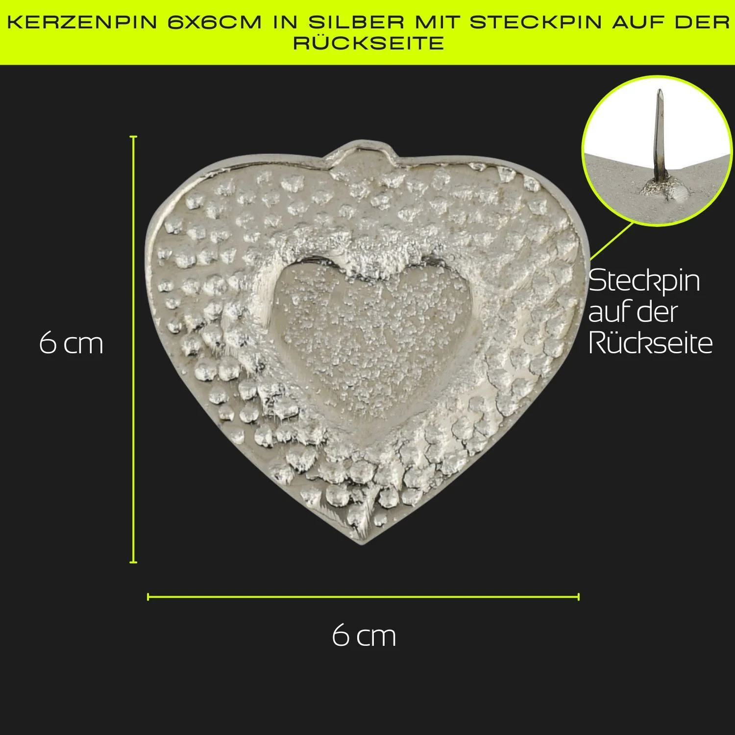 Produktinformationen "Kerzenpin „Caloge A“ – 6 cm, Silber, Handgefertigt"