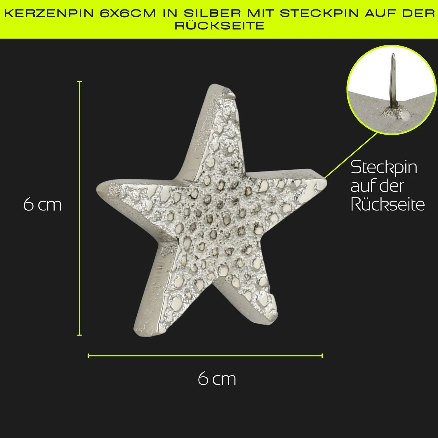 Produktinformationen "Kerzenpin „Caloge J“ – 6 cm, Silber, Handgefertigt"