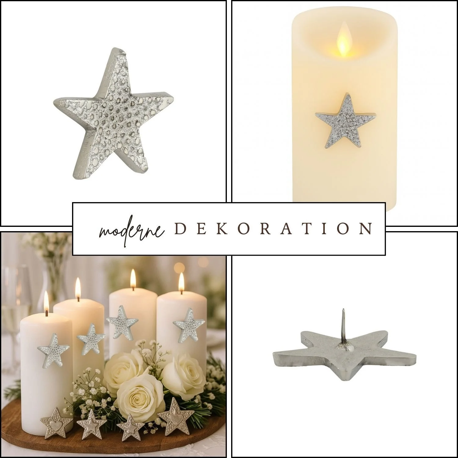 Highlights: Handgefertigtes Unikat, dekorativ und vielseitig einsetzbar, stabil und langlebig, edle Silberoptik, leicht in Kerzen einsteckbar.