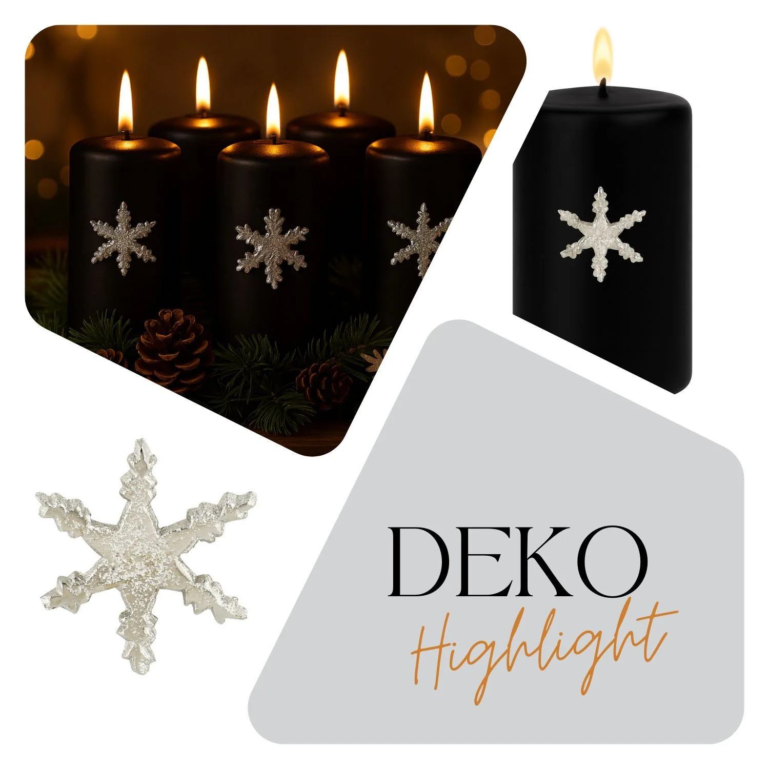 Highlights: Vier handgefertigte Unikate, edle Silberoptik, stabiler Steckmechanismus, vielseitig kombinierbar, ideal für festliche Arrangements.