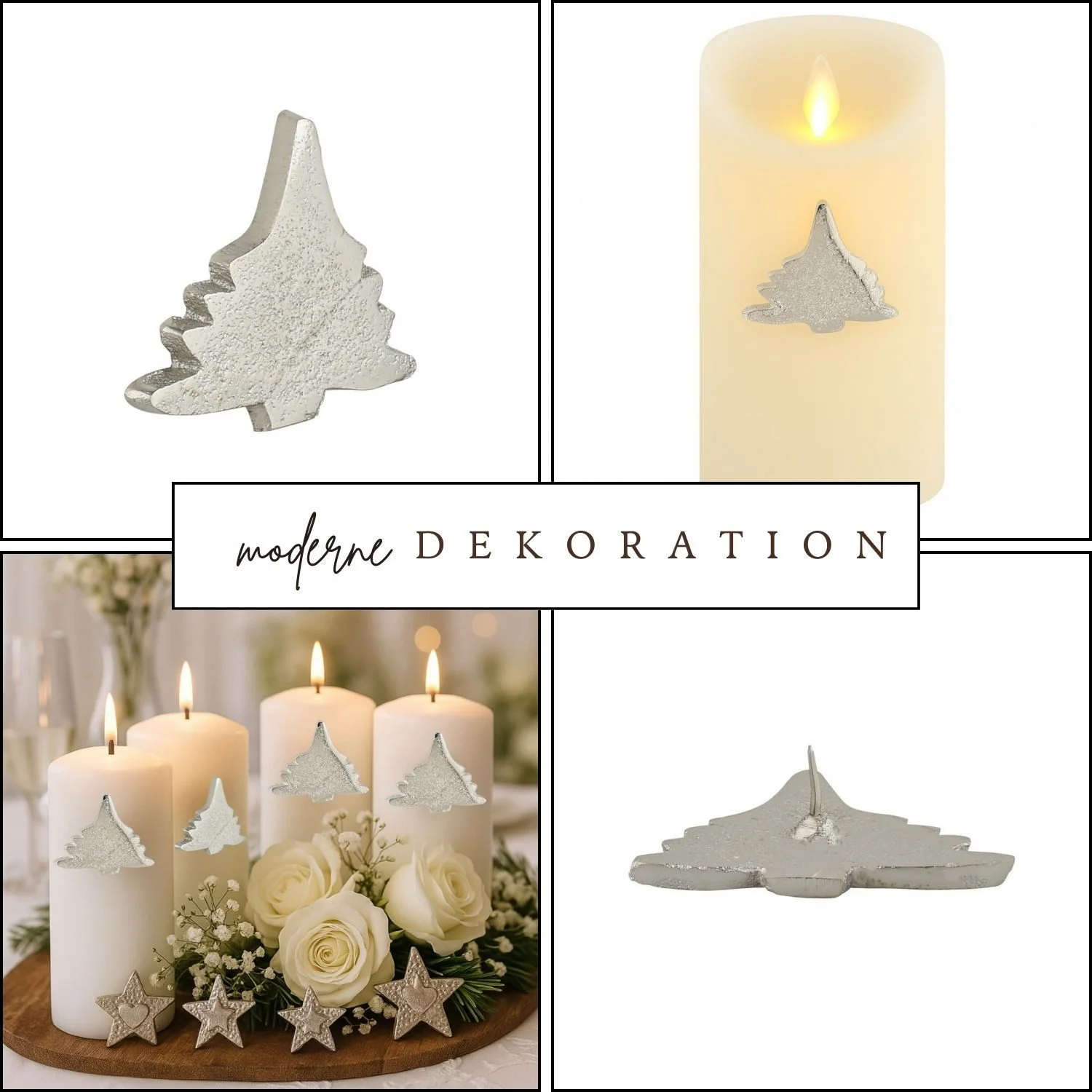 Das 4er-Set „Caloge A–D“ kombiniert handgefertigte Metallkunst mit einem eleganten Boho-Vintage Design. Jedes der vier dekorativen Kerzenpins besteht aus massivem Aluminium und ist in edler Silberoptik veredelt. Ob im Adventskranz, Windlicht oder Kerzenhalter – das Set sorgt für harmonische und stilvolle Akzente in jeder Fest- und Wohnraumdekoration.
