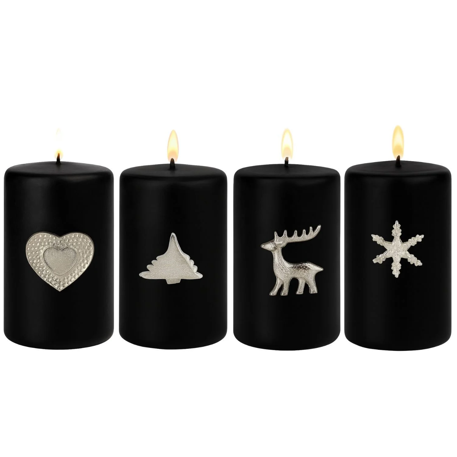 Kerzenpin-Set „Caloge A–D“ – 4 Stück, 6 cm, Silber, Handgefertigt