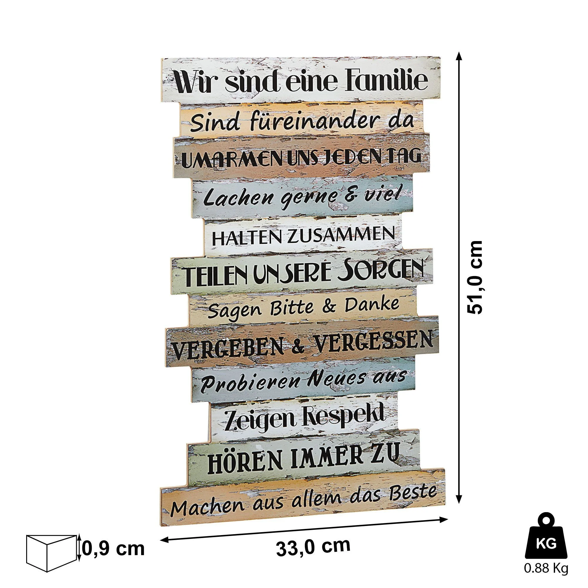 Deko-Wandbild • MDF-Holz • Bunte Plankenoptik • Liebevolle Familien-Sprüche