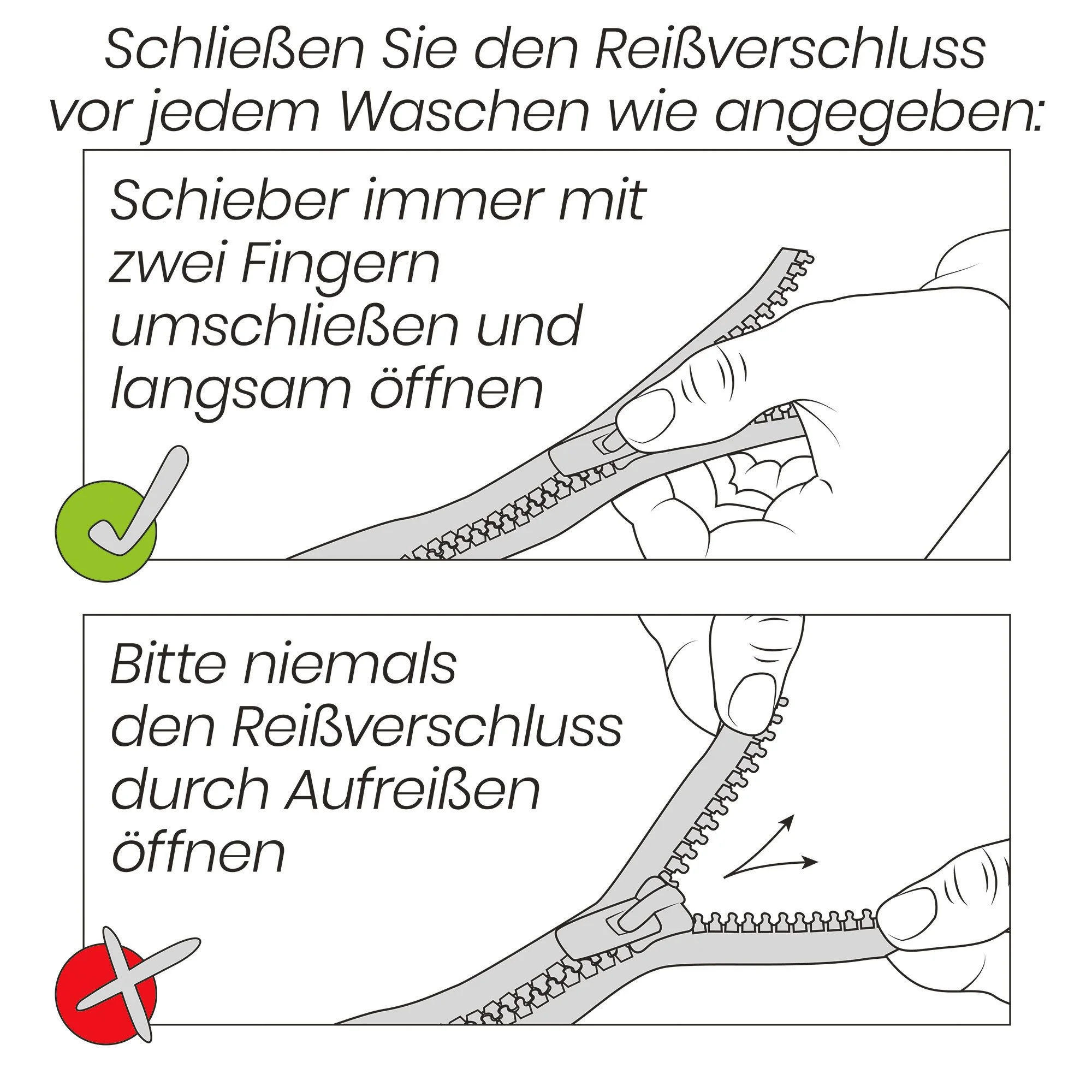 | Waschen | Maschinenwäsche bei 60 °C; nicht bleichen |