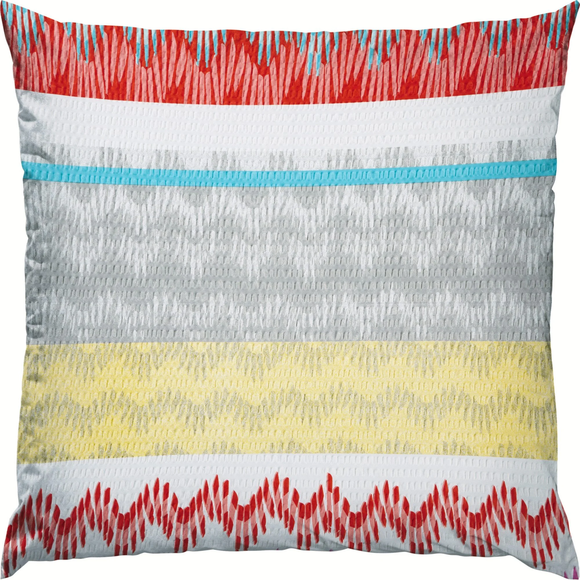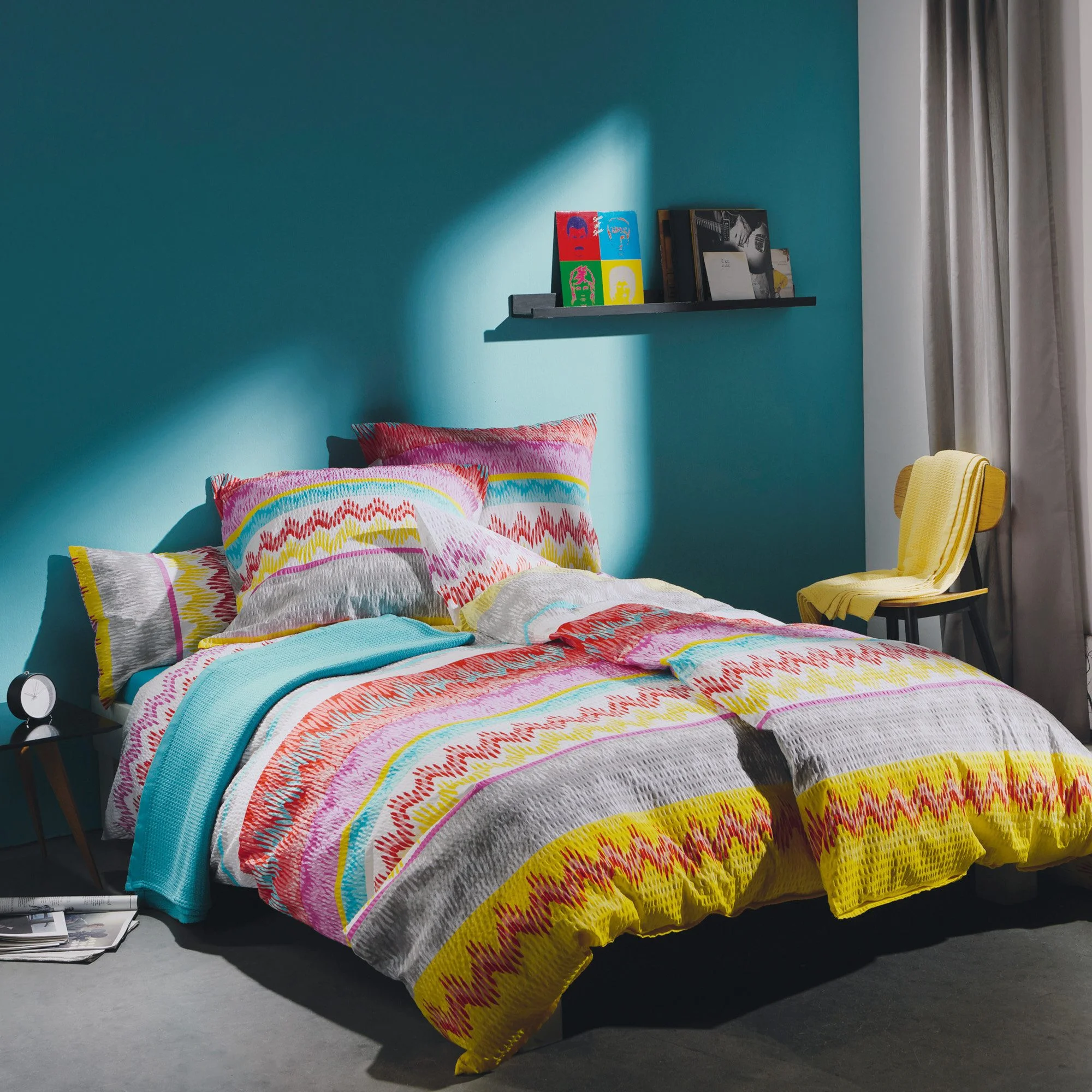 Dieser farbenfrohe Wende-Kissenbezug von Erwin Müller bringt mit seinem modernen Grafikdesign lebendige Akzente in Ihr Schlafzimmer. Die hochwertige Seersucker-Qualität mit ihrer charakteristischen Kräuselstruktur sorgt für optimale Luftzirkulation und ein angenehm trockenes Schlafgefühl – perfekt für warme Sommernächte.