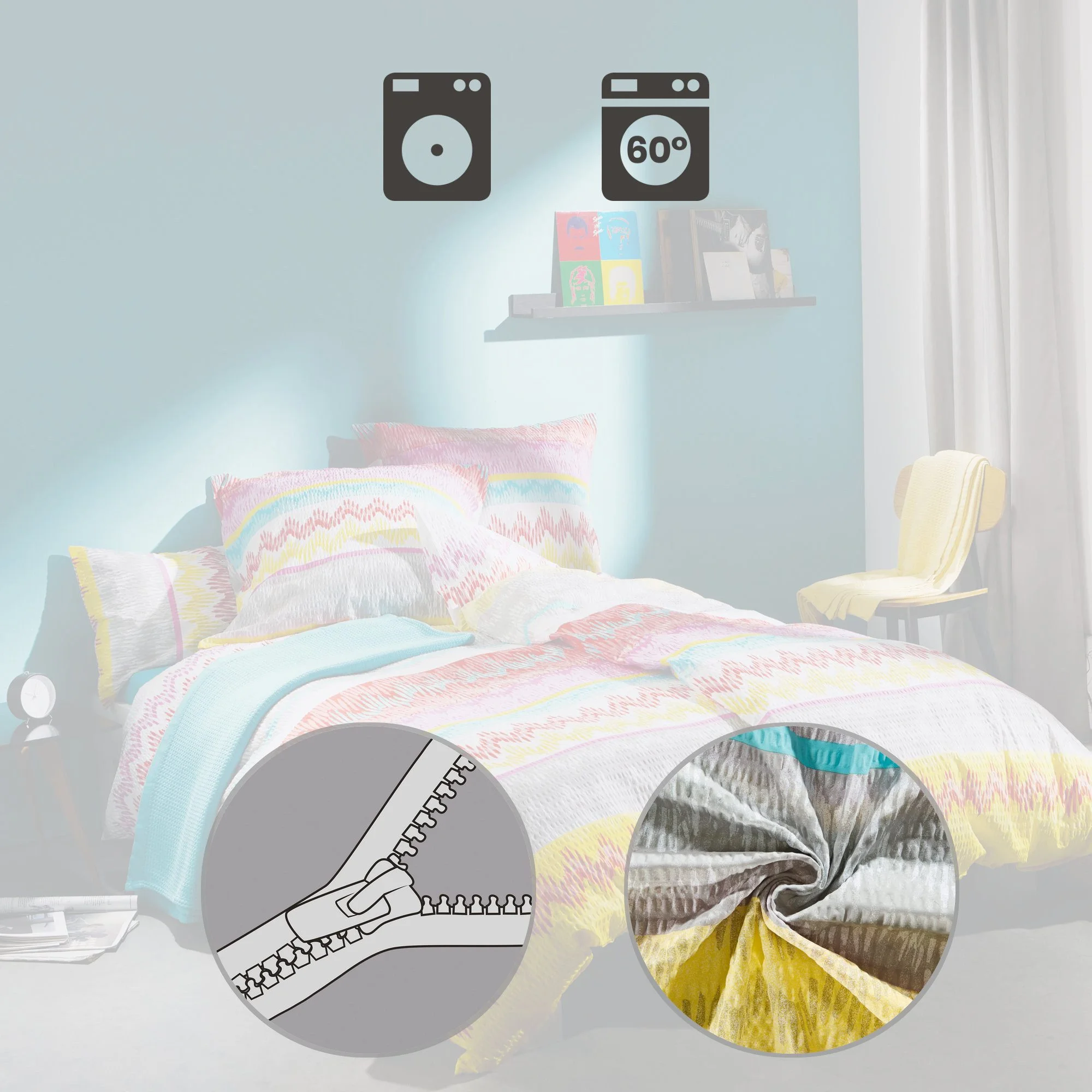 Wende-Kissenbezug im Grafikdesign – Seersucker, atmungsaktiv & bügelfrei