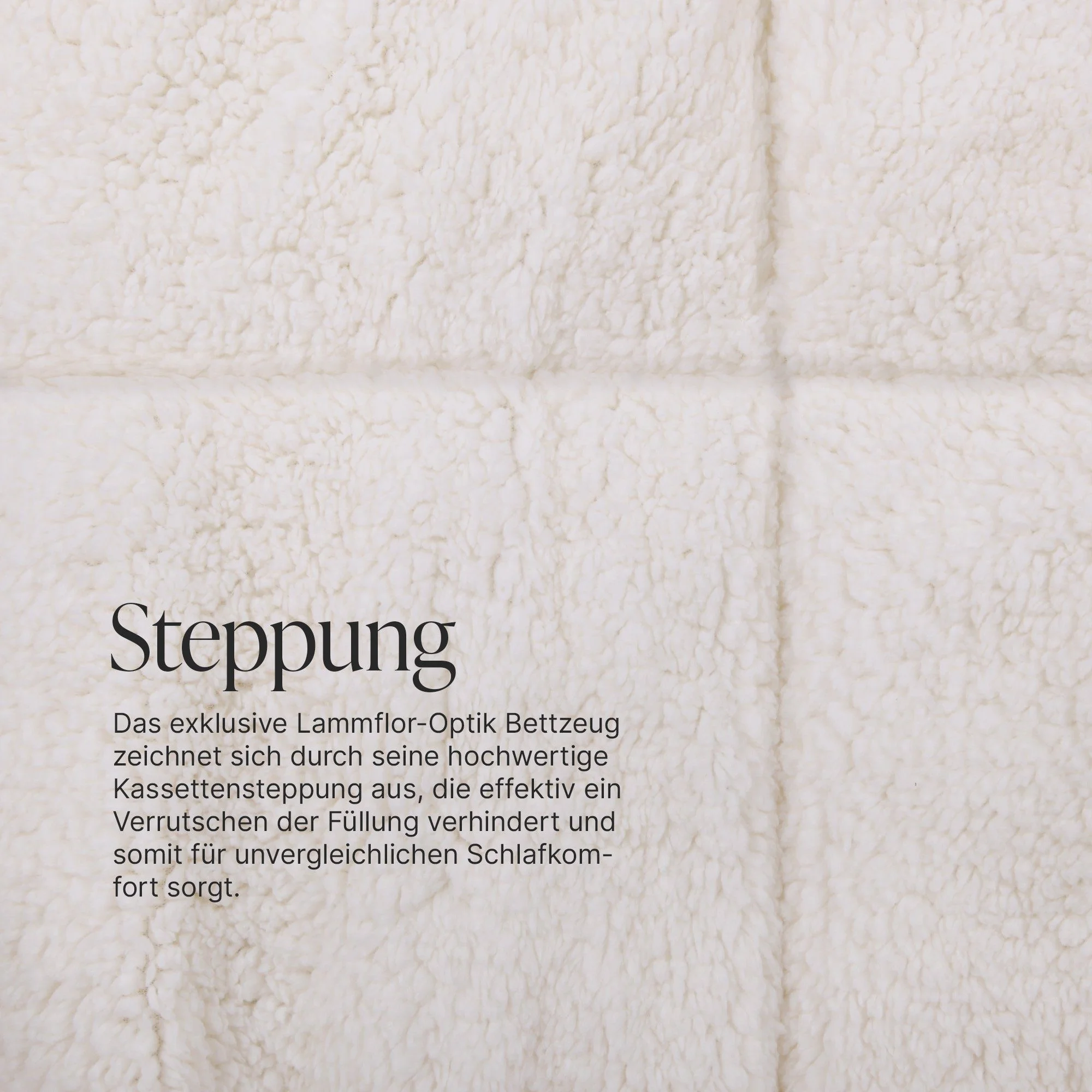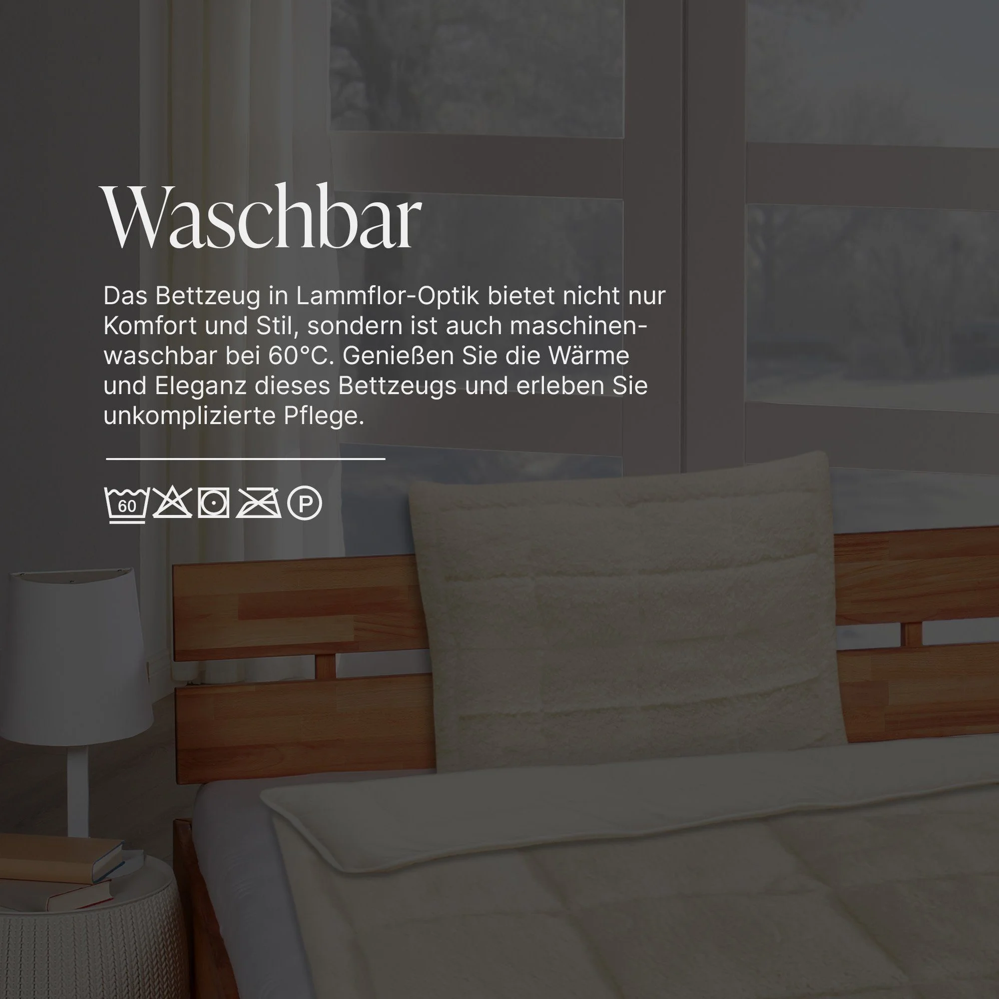 | Optik | Lammflor-Optik (Fleece-Seite), glatt & unifarben (Mikrofaser-Seite) |